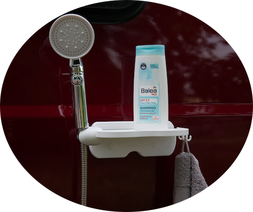 Mit seiner robusten Bauweise ist dieser Funktionshalter bestens für den Outdoor-Einsatz im Camper, Van oder Boot geeignet. So genießen Sie unterwegs ein organisiertes, komfortables und erfrischendes Duscherlebnis – fast wie zuhause.
